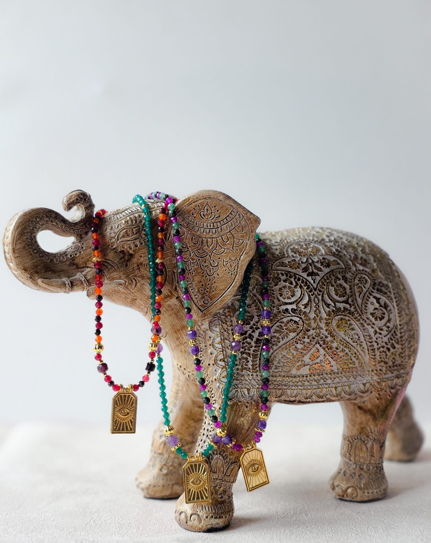 Model de collier iconique de La Bohème Rose cette fois-ci inspiré de la jungle du bengale-occidental, les profondeurs apaisantes de la jungle et la lumière dorée du soleil couchant.