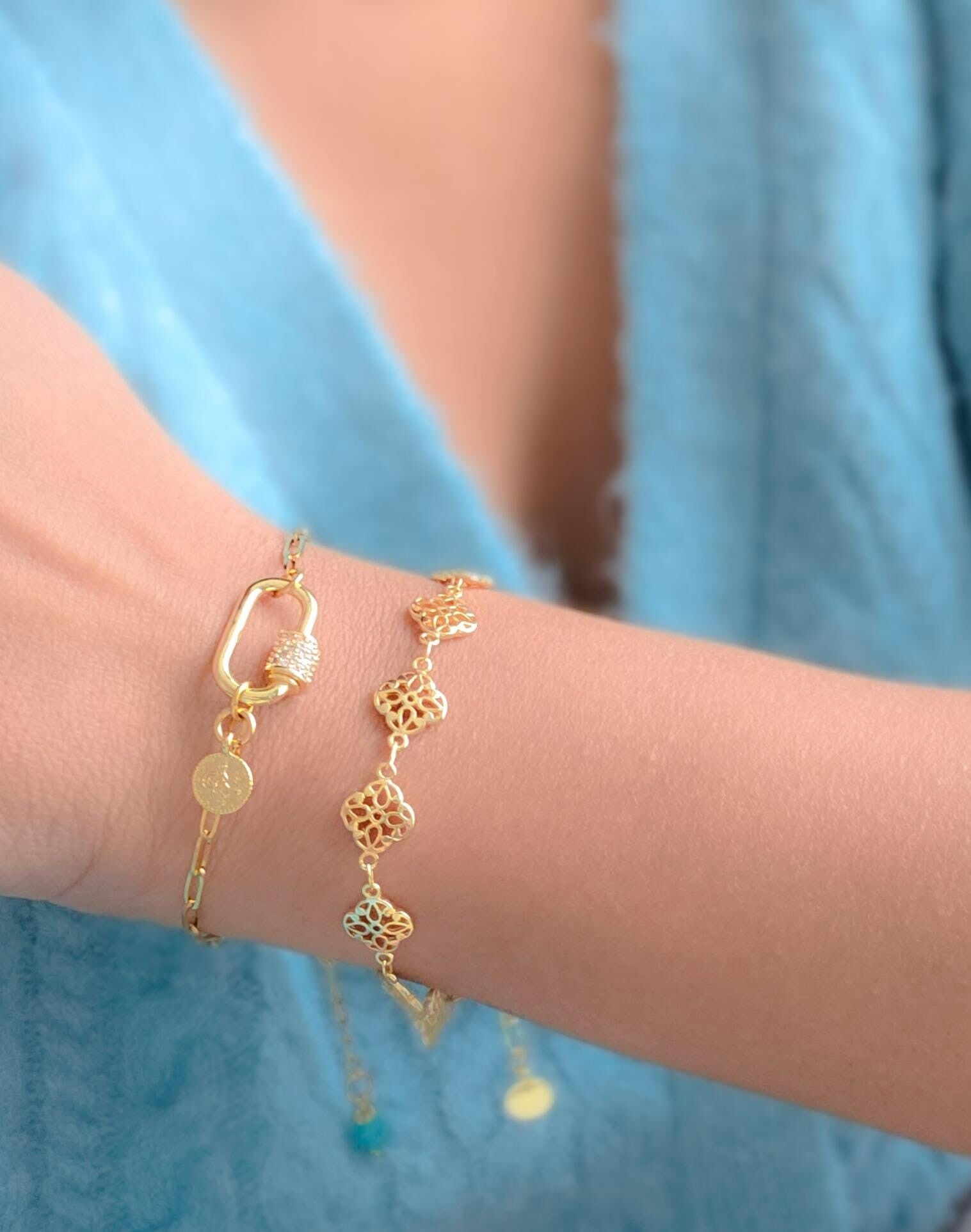 Un bracelet doré délicat, lumineux, pensé pour se porter seul ou en accumulation.